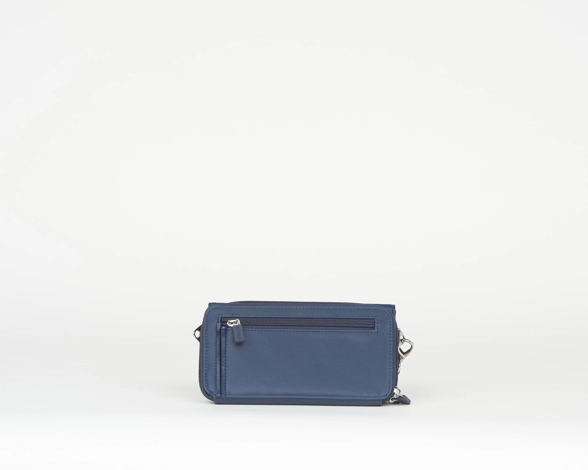 • Front gusseted zipper pocket with RFID card slots & clear ID window