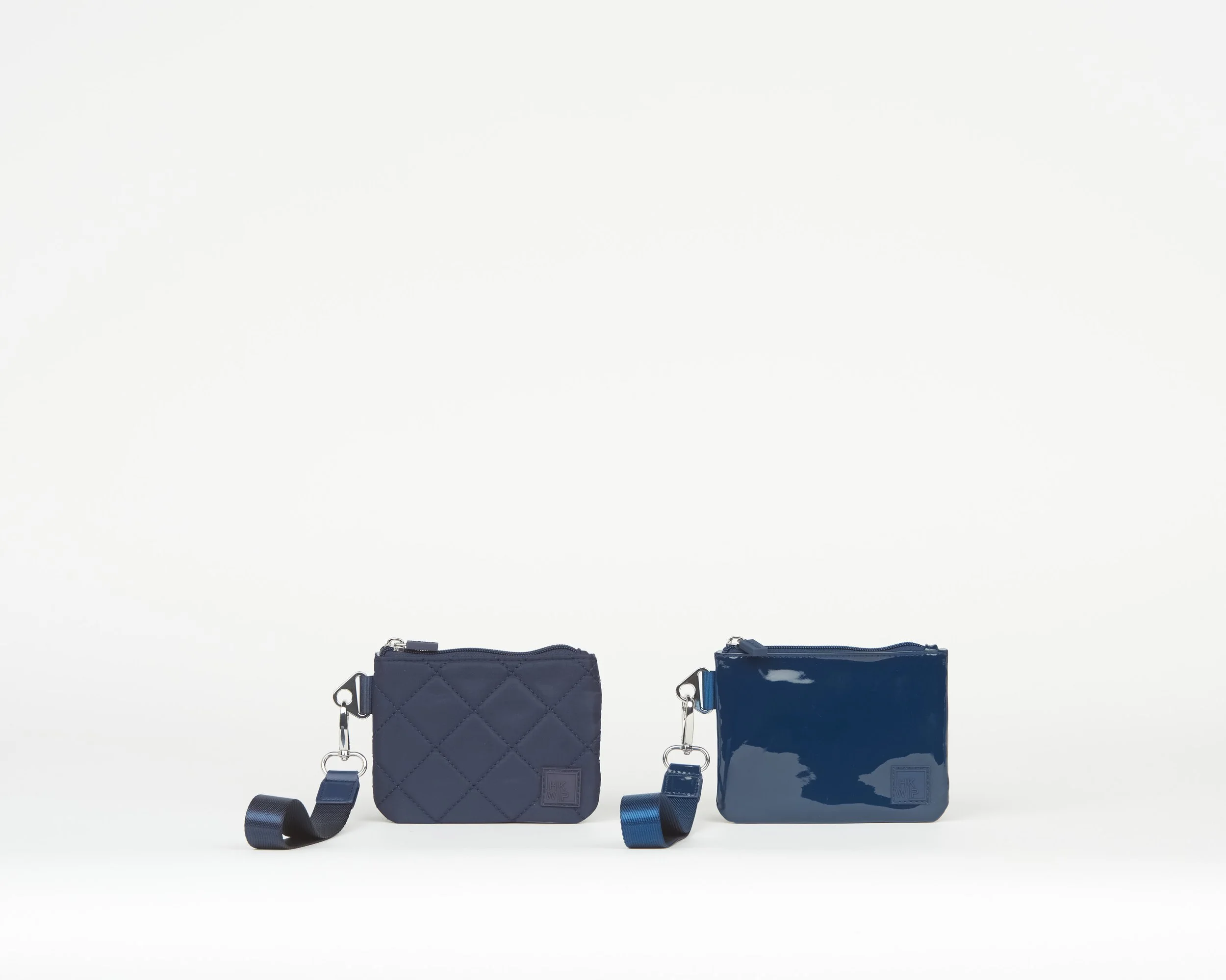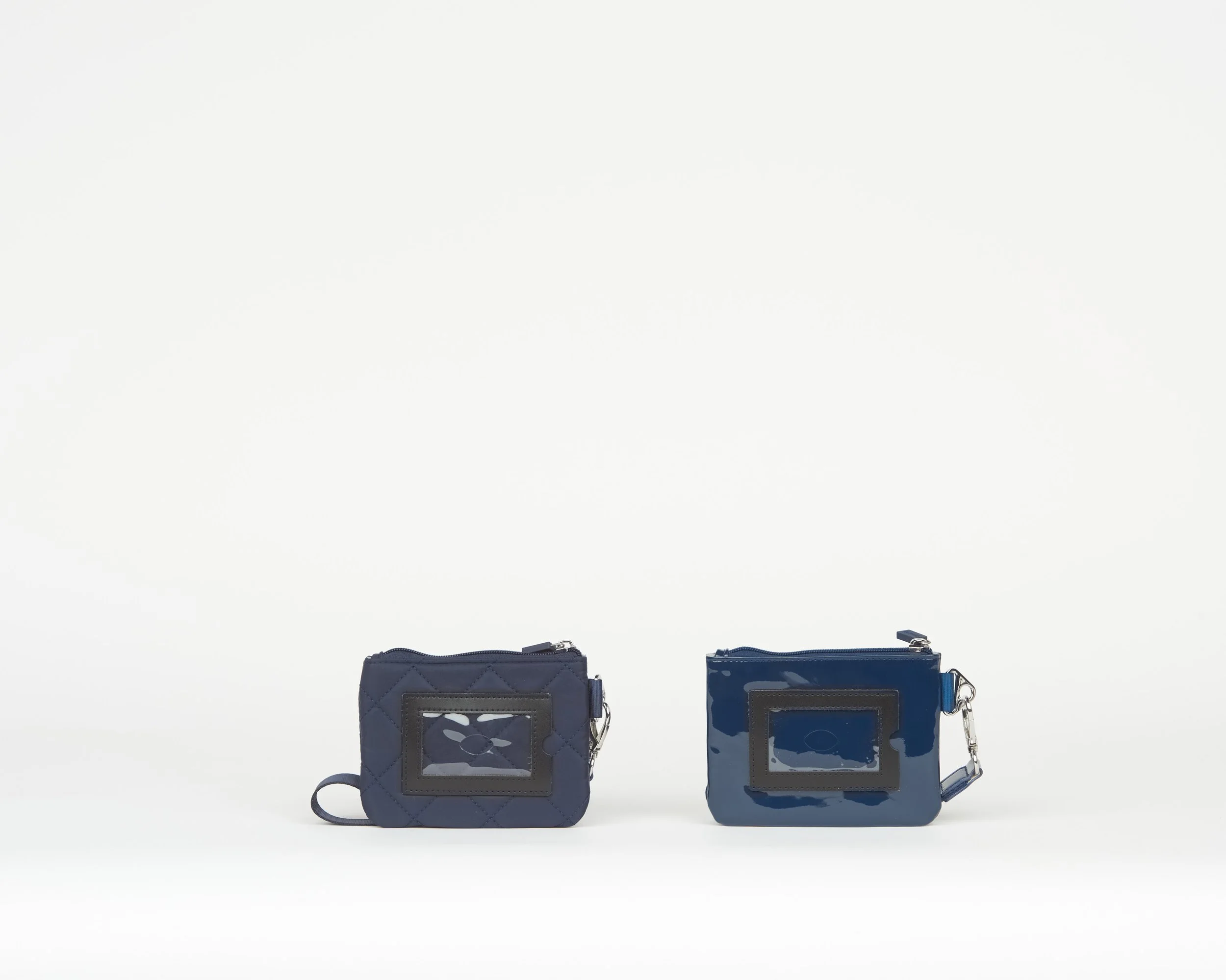 • Gusseted front dual zipper pocket with RFID card slots, clear ID window, bill sleeve, & elastic pen loop