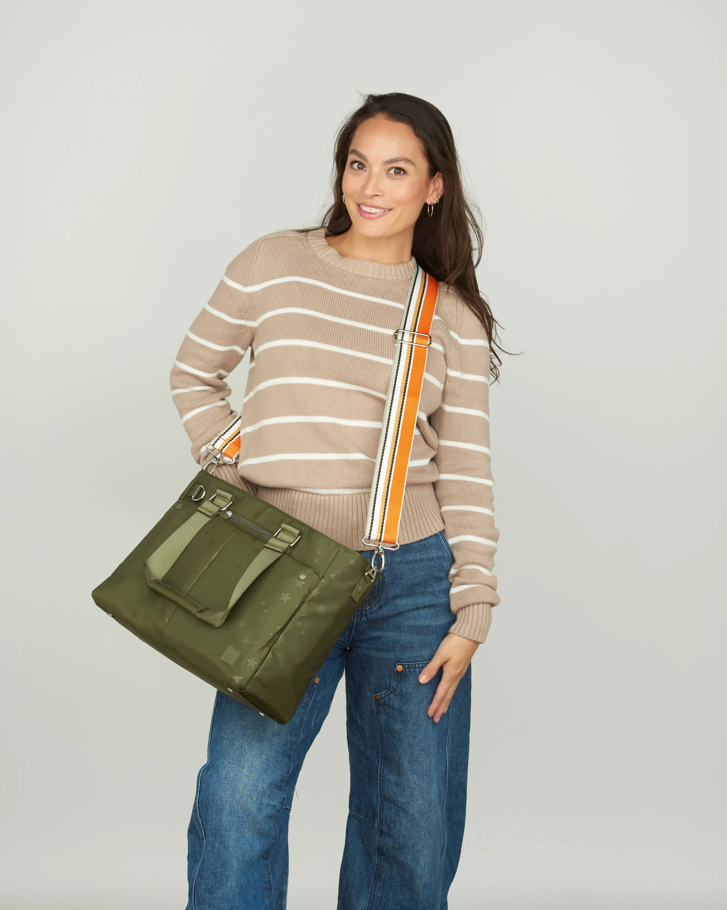- Front mag snap pocket soft-lined for cell phones, readers, & sunglasses