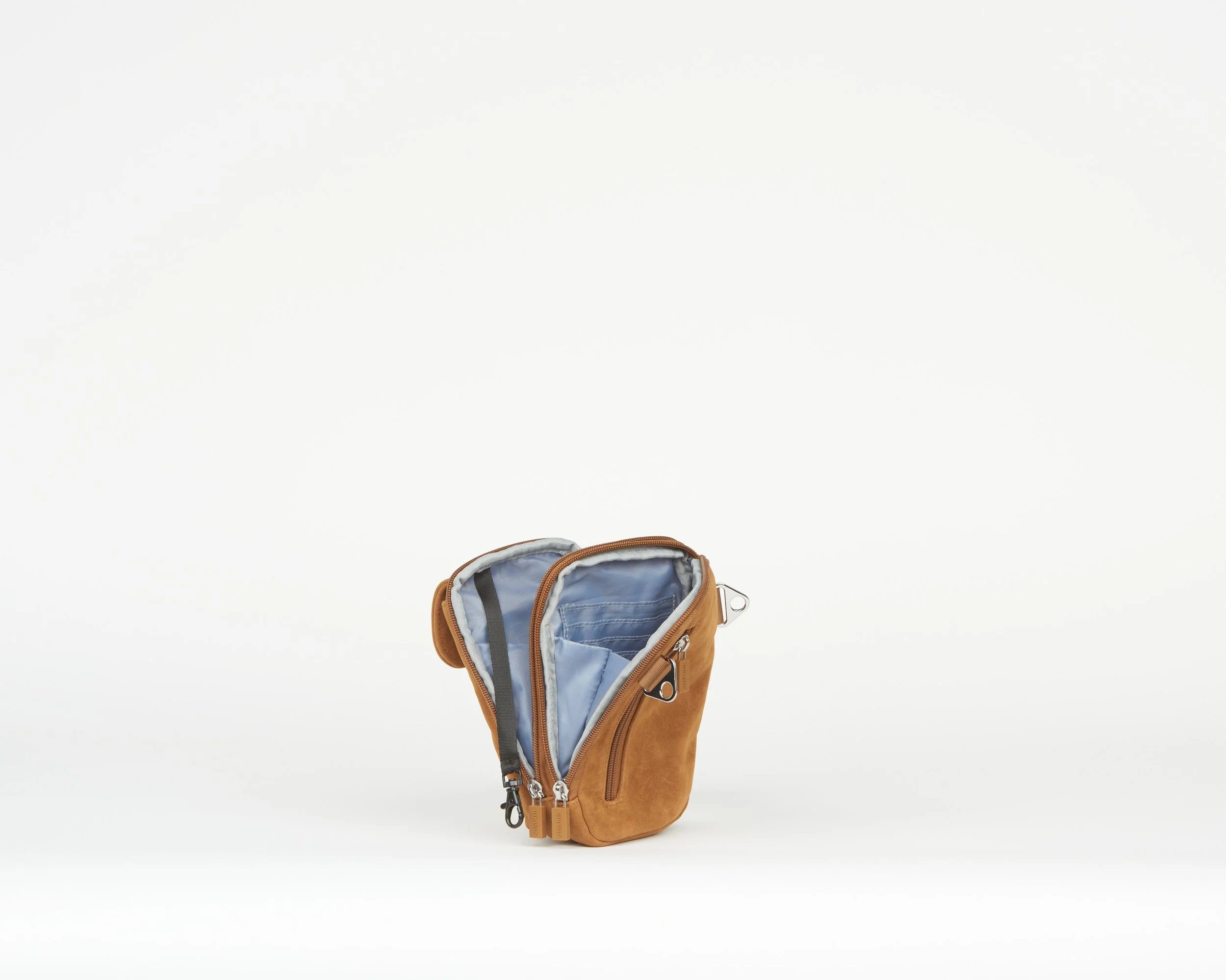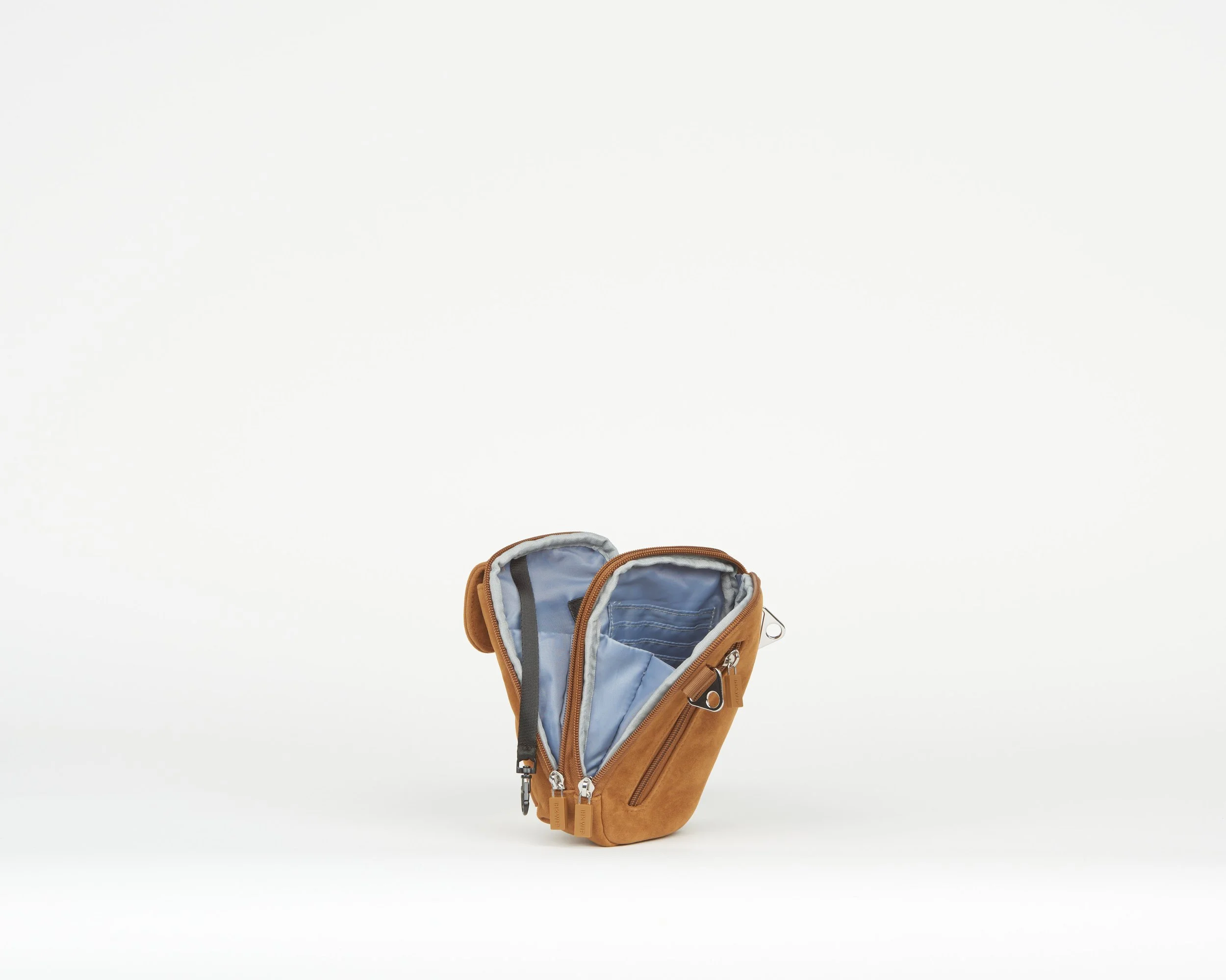 - 2 zipper center compartments with mesh pocket, slip pocket, key clip leash, and 2 elastic loops